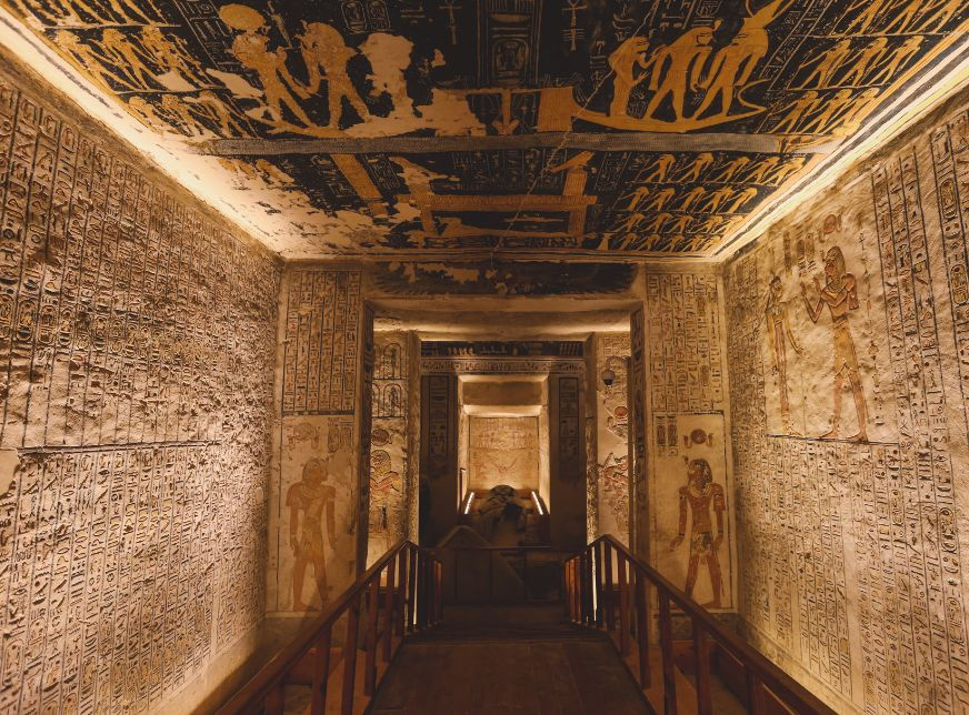 Next, discover the Grand Egyptian Museum (GEM), the newest and largest archaeological museum in the world, located just a stone’s throw from the pyramids. Step inside and explore over 100,000 priceless artifacts, including the complete Tutankhamun, ruled as a boy only for a short time. He is most famous because his tomb was discovered almost intact and full of treasures in 1922 Tutankhamun collection displayed together for the very first time. Wander through halls filled with magnificent statues, intricate jewelry, ceremonial objects, and interactive exhibits that bring Egypt’s 7,000-year history to life.