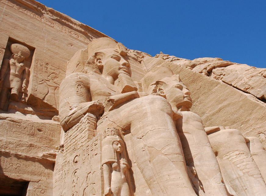The two temples of Ramses the second and the Queen Nefertari were carved out of the Mountain on the west bank of the Nile between 1274 and 1244 B.c, The Great Temple was dedicated to Ramses the second, Ra-Harakhty, Amun Ra, and Ptah, with 4 Colossal statues, The second temple was dedicated to The Queen Nefertari and Goddess Hathor, the two temples were dismantled stone by stone and rebuilt on higher ground, The preservation of the two temples of Abu Simbel must Rank as the greatest Achievement of the Unesco.