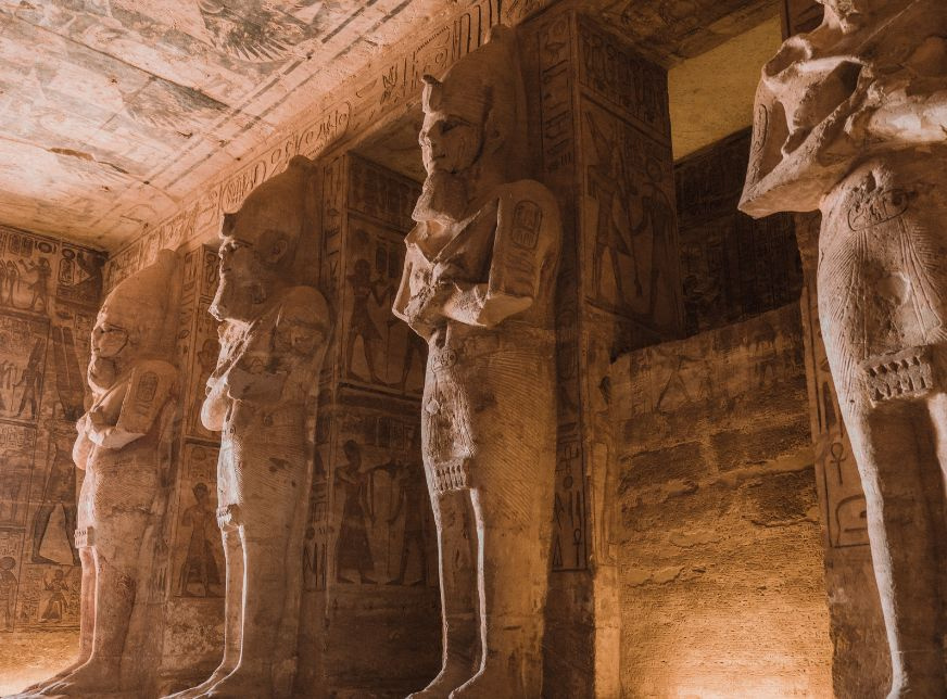 The two temples of Ramses the Second and the Queen Nefertari were carved out of the Mountain on the west bank of the Nile between 1294 and 1244 B.c, The Great Temple was dedicated to Ramses the Second, Ra-Harakhty, Amun Ra, and Ptah, with 4 Colossal statues, The second temple was dedicated to Queen Nefertari and Goddess Hathor,the two temples were dismantled stone by stone and rebuilt on higher ground, The preservation of the two temples of Abu Simbel must Rank as the greatest Achievement of the Unesco