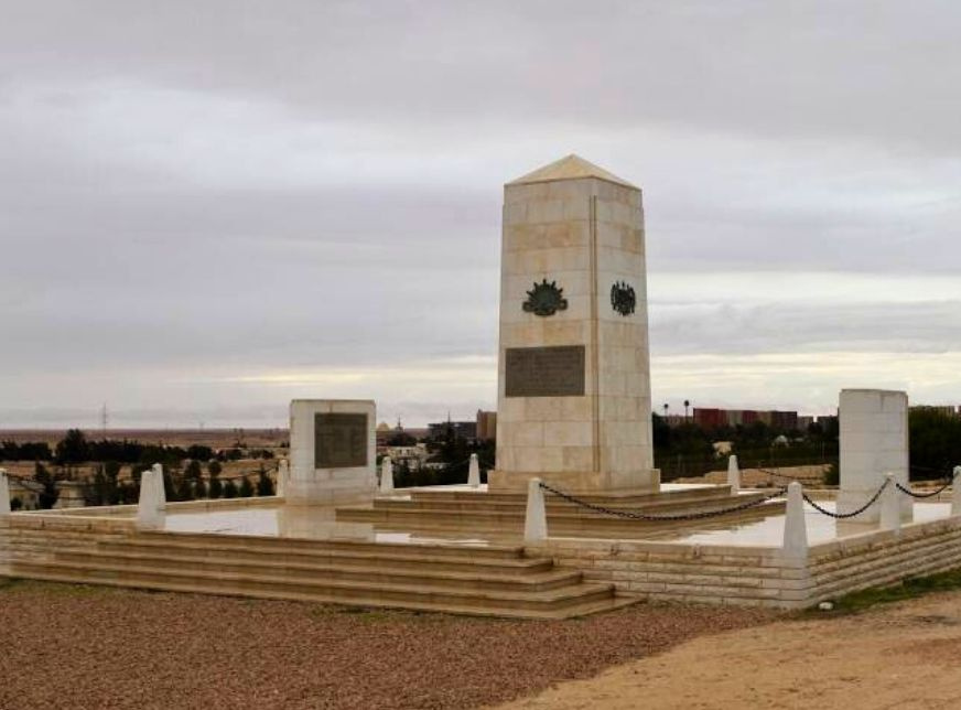The Elegant white marble Italian Memorial, the largest structure at El Alamein .stands 5 kilometres beyond the German Memorial, it was designed by Paolo Caccia dominoni who served at El-Alamein and also wrote a book about it