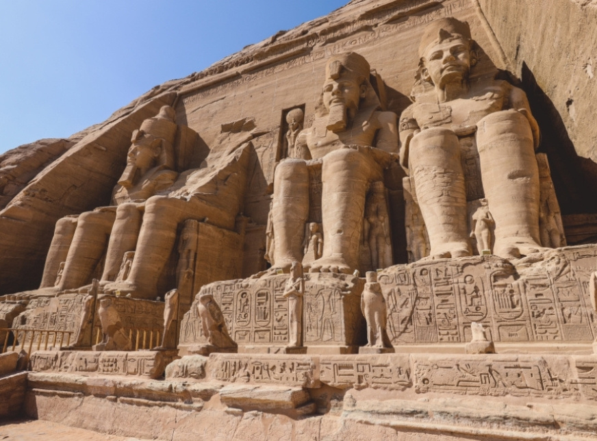 Die beiden Tempel von Ramses II. und der Königin Nefertari wurden zwischen 1274 und 1244 v. Chr. aus dem Berg am Westufer des Nils gehauen. Der Große Tempel war Ramses II., Ra-Harakhty, Amun-Re und Ptah geweiht und enthielt vier Kolossalstatuen. Der zweite Tempel war der Königin Nefertari und der Göttin Hathor gewidmet. Beide Tempel wurden Stein für Stein abgetragen und auf höherem Gelände wieder aufgebaut. Die Erhaltung der beiden Tempel von Abu Simbel zählt zu den größten Errungenschaften der UNESCO.