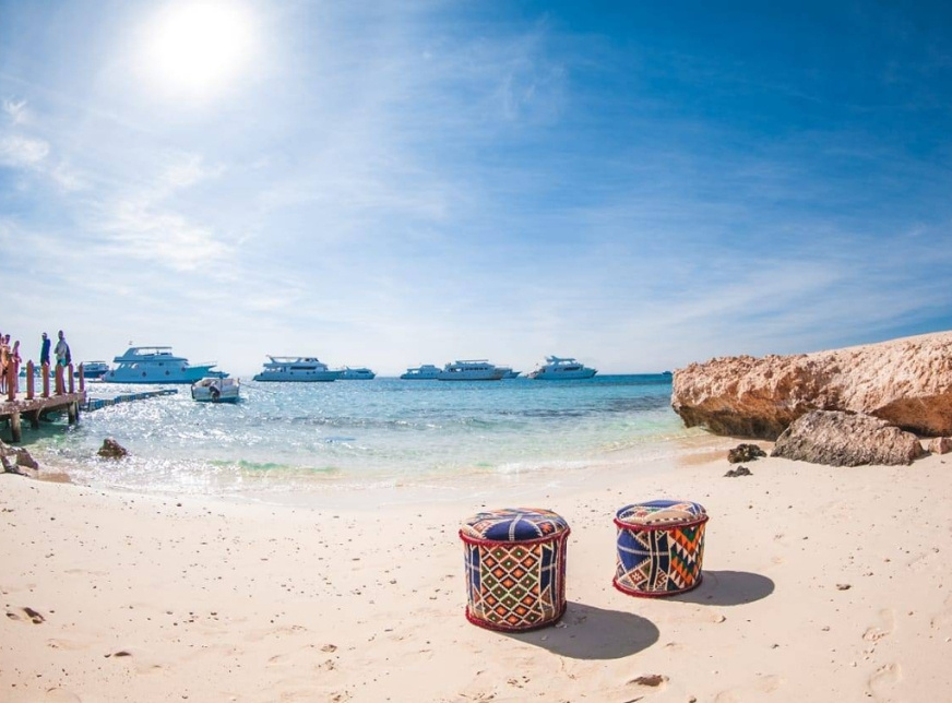 Schnorcheln Sie in den Korallenriffen und Gärten der Insel Mahmya im Roten Meer im geschützten Gewässer des Giftun-Nationalparks und bestaunen Sie Delfine, bunte Fischschwärme und vieles mehr. Schwimmen Sie im kristallklaren Wasser und entspannen Sie an weißen Sandstränden.