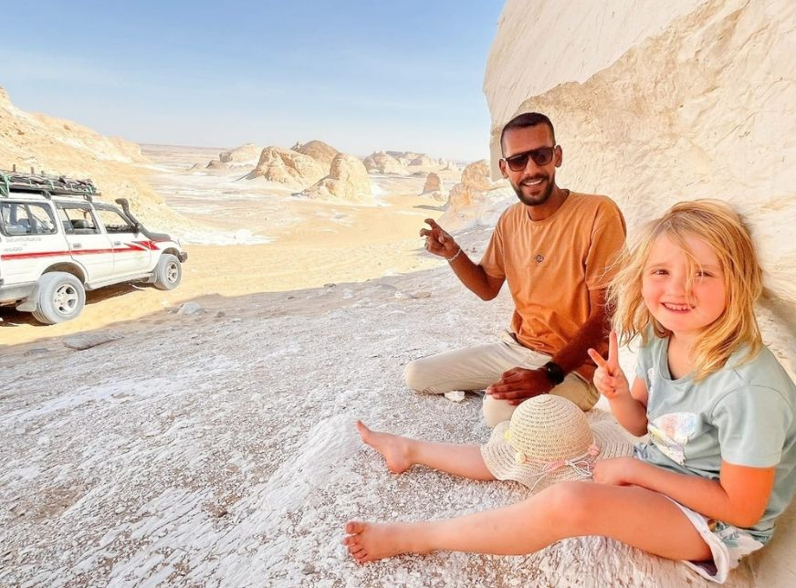 Um 14:00 Uhr erreichen Sie das Tal von Agabat tief in der Weißen Wüste. Sie müssen dort gewesen sein, um die überirdische Schönheit dieses Ortes zu spüren. Vor Millionen von Jahren lag dieser Ort unter dem Meer. Im Laufe der Jahre entstanden einzigartige Felsformationen aus Kalkstein, Kreide (und möglicherweise Sand).