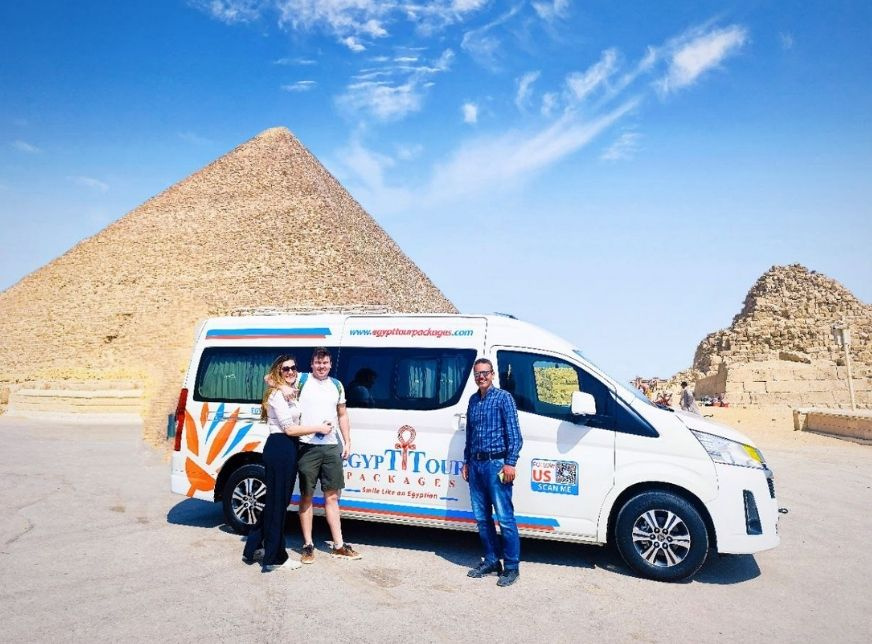 Ein Vertreter von Egypt Tour Packages holt Sie vom Flughafen Kairo oder einem anderen Ort in Kairo ab und fährt Sie dann zu den Pyramiden von Gizeh.