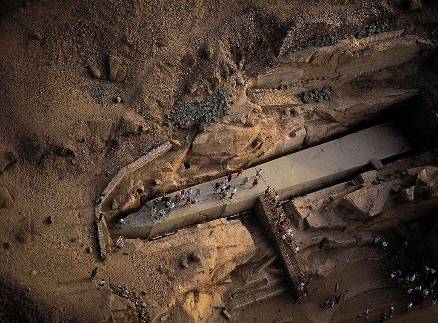 war die Quelle des feinsten Granits im alten Ägypten, aus dem Statuen gefertigt und Tempel, Pyramiden und Obelisken verziert wurden. Der große, unvollendete Obelisk in den nördlichen Steinbrüchen lieferte wertvolle Erkenntnisse über die Entstehung dieser Monumente, obwohl der genaue Bauprozess noch immer nicht vollständig geklärt ist. Drei Seiten des fast 42 Meter langen Schafts waren bis auf die Inschriften fertiggestellt. Mit 1168 Tonnen wäre der fertige Obelisk das schwerste Steinbauwerk gewesen, das die Ägypter je geschaffen haben.