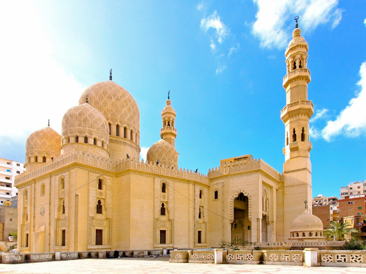 Een van de belangrijkste bezienswaardigheden van Alexandrië, de Abu Abbas al-Mursi-moskee, werd in 1796 gebouwd boven het graf van de 13e-eeuwse soefi-heilige Abu Abbas al-Mursi. Oorspronkelijk afkomstig uit Murcia (in de Spaanse regio Andalusië), werd Abu Abbas een zeer gewaardeerde religieuze leider in Alexandrië, en zijn leringen worden nog steeds vereerd in Egypte. Het werd tussen 1929 en 1945 opnieuw ontworpen en gebouwd door Eugenio Valzania en Mario Rossi. De tempel is zeker een van de mooiste moskeeën in Egypte, evenals een van de spiritueel meest belangrijke plaatsen om naartoe te gaan tijdens een bezoek aan Alexandrië. De traditionele architectuur is adembenemend en het ligt direct naast de Citadel van Qaitba