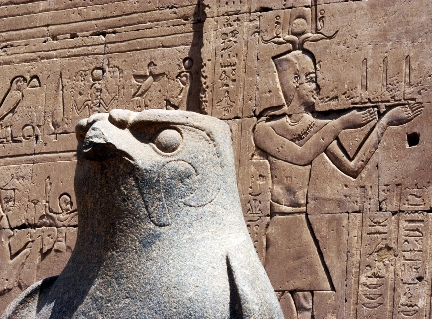 W górnym Egipcie dominuje duża, dobrze zachowana świątynia poświęcona bogu-jastrzębiowi Horusowi. Budowa ptolemejskiej świątyni Horusa, która została założona na miejscu znacznie starszej świątyni, datowanej na okres między panowaniem Ptolemeusza III (246 r. p.n.e.). Opisy na ścianach obejmują mit o walce Horusa i Seta (prawdopodobnie odgrywany corocznie jako dramat religijny).