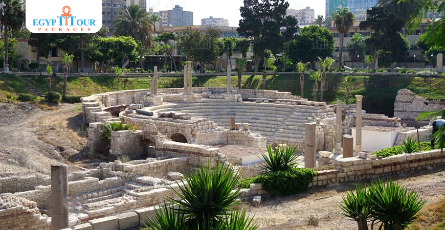 Teatr Rzymski znajduje się w Kom El-Dikka, jednej z historycznych dzielnic Aleksandrii, która obecnie należy do centralnej dzielnicy Aleksandrii.