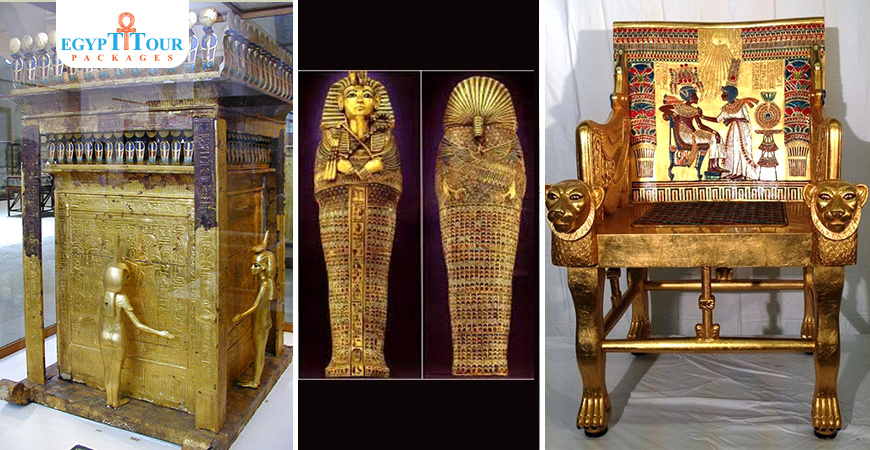 a spotykającego bogów w innym świecie. Znaleziono 3500 elementów zawartości rozłożonych w różnych pokojach, co daje nam wyobrażenie o sposobie życia w pałacu królewskim. Carter, który odkrył grobowiec w 1922 roku, znalazł ubrania