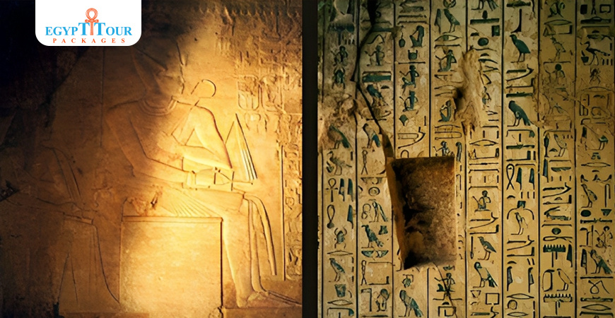 The tombs contain a religious inscription of the pilgrimage to the Temple of Abydos. Drawings of the daily life of the ancient Egyptians and the Pharaohs in agriculture and hunting, whether catching birds or fish from the lake. Pharaonic inscriptions depicting family celebrations, listening to music, and dancing.