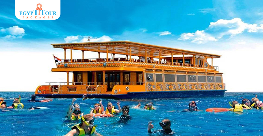 Dolphin House, also known as Sha'ab Samadai in El Quseir, is a great spot for snorkelers to see dolphins near the reefs. You can snorkel with dolphins in the stunning Red Sea and even swim with them.(The Egypt tour packages representative will meet you at your hotel in El Quseir and take you to the marina. From there, you will board a boat to head to the Dolphin House, also known as ‘’Sha’ab Samadai’’. This is a great spot for snorkeling enthusiasts to see dolphins near the reefs. Before you start snorkeling, the guide will give you a brief about the site. You will have two stops for snorkeling near the reefs where dolphins live, each lasting about 45 minutes with breaks in between for drinks and snacks on the boat. If you've always wanted to swim with dolphins in their natural habitat, this trip to the Dolphin House “Samadai Reef” is your chance. The reef is shaped like a horseshoe, providing protection from the wind and sea, making it a perfect spot for spinner dolphins to relax and play. It's a unique opportunity to interact with these beautiful marine mammals as they swim and play with snorkelers and divers. If you're lucky, you might even come face to face with the dolphins. After snorkeling, you can explore Shaab El Quseir before heading back to the port for your transfer to the hotel. Lunch and drinks will be provided on board, making it a memorable day at the Dolphin House.) Book your trip now.