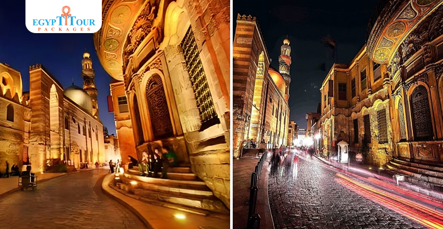 Al-Muizz is an ancient street in Cairo that connects the southern gate of Bab-Zuweil to the northern gates of Bab-en-Nasr and Bab-al-Futuh. It is located about 30 minutes away from Downtown Cairo and is renowned for its Islamic architectural wonders from the medieval era. As you walk along this street, you will come across numerous mosques, as well as the goldsmiths bazaar, markets for bowls, pots, and ornaments, and the coppersmiths' bazaar. The coppersmiths' bazaar, also known as Al-Nahaseen, is a section of the street that used to be a grand parade ground between the caliphal palaces. Interestingly, the first book in Naguib Mahfouz's Cairo Trilogy was titled after this street and translates to "Palace Walk".