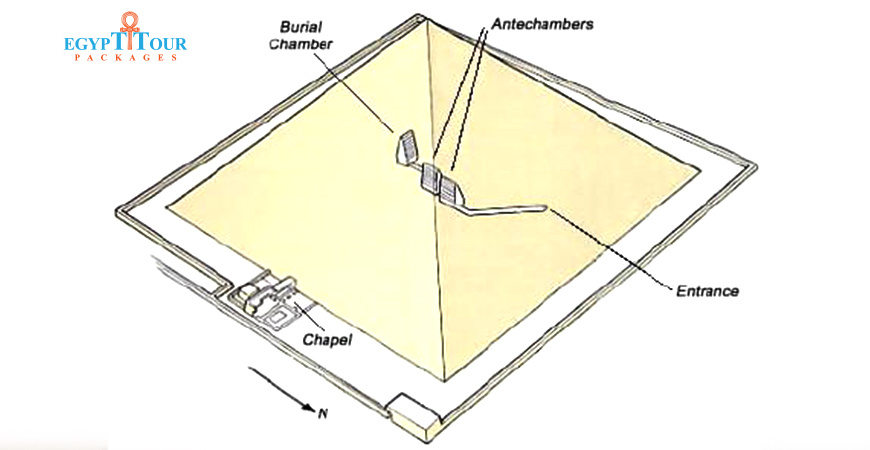 is open to the public and can be entered through an entrance on the north side. The passage leads to a series of chambers, including the burial chamber, which is located at the heart of the pyramid. The burial chamber is empty, and it is not known where Sneferu was actually buried.