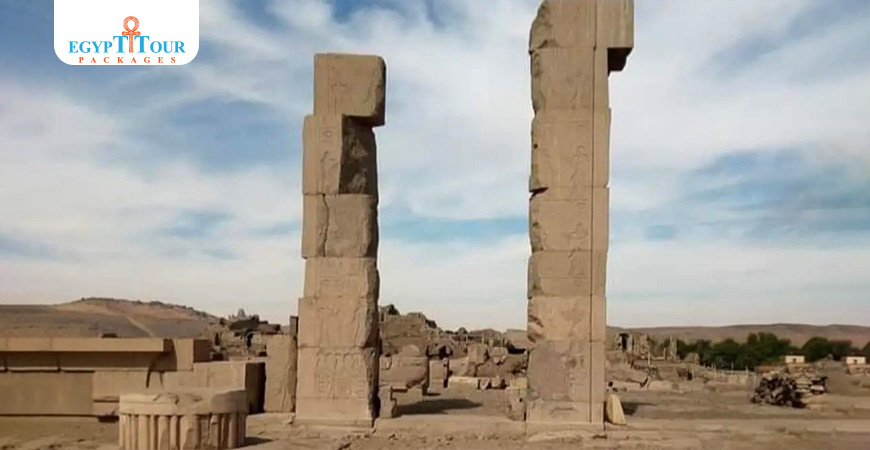 There is also the temple of the god “Khnum”, the stones of which were looted earlier and only the two pillars of the main entrance remain.