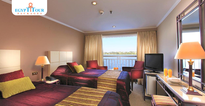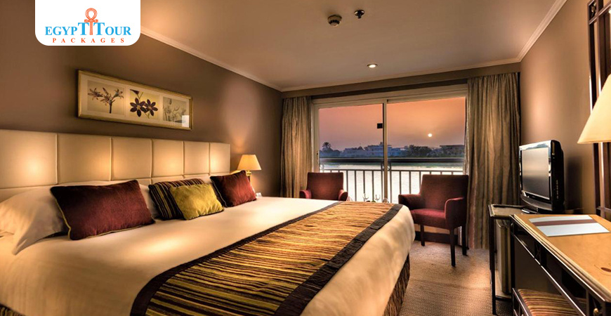 The Jaz Crown Jewel features elegant cabins that provide stunning views of the Nile while sailing between Aswan and Luxor.