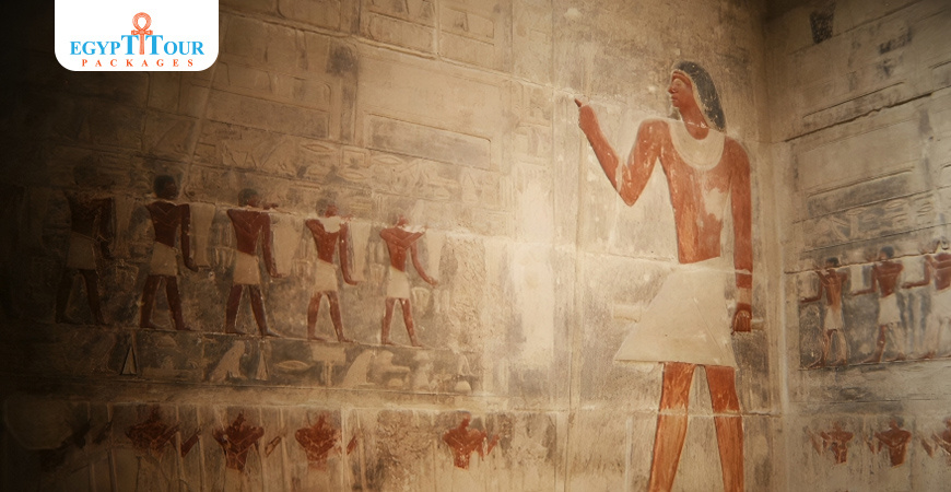 The tomb is located east of and adjacent to the Mari Roca cemetery, and its door opens to the east. The mastaba consists of seven rooms, most of which are rectangular in shape, all of which are engraved in relief. Some of their views are excellent. Lepsius uncovered the Kagmeni tomb in 1843, but he was unable to publish it.The tomb was covered with sand for a period of fifty years, and the Antiquities Service re-cleaned the tomb in 1893. De Morgan participated in the cleaning process, and Loret also participated in cleaning and preparing the tomb and others for public visitation.Von Bissing came from the Saqqara region and attempted to publish parts of the tomb from Room 4 to Room 8 in two parts in the German language between the years 1905-1911. Then the Saqqara Koppel region came and carried out cleaning and excavation work around the Kagmeni cemetery in the years 1905-1907. Excavations and cleaning of graves stopped from 1914-1920 due to World War I.In the fall of 1920, financial funds became available to archaeologists, and archaeological work resumed activity and he came to the Saqqara Firth area. He carried out some excavations in the Cemetery of Teti for a few years, re-excavated this cemetery and published parts of this cemetery in five pages and 6 pictures in a two-part book.Then Harpur recently studied the details of the cemetery’s landscape in a very valuable and useful study which added much, much more, and was distinguished by distinctive cultural comments.