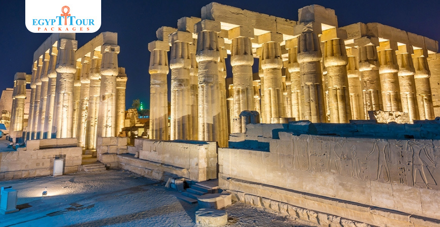 Luxor Temple located on the east bank of Nile River in the city called luxor , it was known in the egyption language as Luxor Temple is located south of Karnak Temple, east of Thebes or Luxor.The Name of Temple was (Ipt- rsyt ): It means the word Ibt: The temple, shrine, or holy of holies. The private palace, the location of the royal harem in the palace, the harem. The Luxor Temple located on the east bank of Nile River in the city called luxor , it was known in the egyption language as Luxor Temple resembled all the previous meanings, as it was a temple in which Amun, Mut, and Khonsu were worshiped, and it included shrines and the Holy of Holies. It also represents a special palace in which Amun meets his wife Mut every year in a large celebration of the sacred marriage anniversary, where Amun, Mut and Khonsu move from Karnak, which represents the official seat of the god and the palace of government, to the Luxor Temple located on the east bank of Nile River in the city called luxor , it was known in the egyption language as Luxor Temple once a year and settle for a certain period (11 days) in the family, 18 and 23 days. In the 19th Dynasty, and 27 days later in the 20th Dynasty, in that temple, which represents the wedding palace where the god meets with his wife, it is a place for the harem, and so is the Temple of Luxor, which is a special temple and palace in which Amun secludes himself with Mut, who is his master of the harem. The Arabs called this Luxor Temple located on the east bank of Nile River in the city called luxor , it was known in the egyption language as Luxor Temple because the temple included huge rooms and halls that resembled palaces.Construction of the temple. King Amenhotep III gave his engineer Amenhotep Ibn Habu orders to begin the foundation of the Temple of Apet-Rset, which he started from the inside out. The king died and the front part of the temple, represented by a long corridor with two rows of columns, was not completed. Work on the temple stopped during the reign of Akhenaten, who erased the name and inscriptions of Amun from the temple. He died. Akhenaten, and the religion of Amun returned as the official religion of the state. This path was completed by Tutankhamun, ruled as a boy only for a short time. He is most famous because his tomb was discovered almost intact and full of treasures in 1922 Tutankhamun , then Horemheb after him, Seti I, and Merenptah, was the fourth ruler of the 19th dynasty in ancient Egypt. Tomb KV 8. Merneptah .Seti II and Ramses IV. Ramesses II built a edifice in front of the temple and a colonnaded courtyard behind it, and placed 6 statues and two obelisks in front of it. The length of the temple reached 256 meters after Ramesses II added it.
