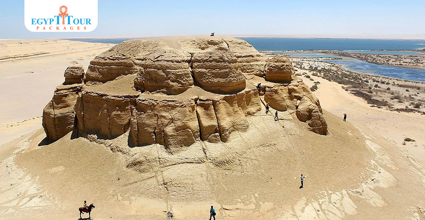 Al-Mudawara mountain is a high plateau in the shape of a circle,at the bottom of which is a clean, pollution-free natural lake.The reason for Mount Al-Mudawara’s fame is that it is located in a unique natural reserve, namely the Wadi al-Rayyan Reserve, which is 150 kilometers away from the Egyptian capital Cairo.The Mount Al-Mudawara area is an enchanting destination in the desert of Fayoum Governorate in the Wadi Al-Rayyan Reserve where safaris mountain climbing, and sand skiing can be undertaken.Wadi Al-Rayyan Reserve is distinguished by its integrated desert environment, including sand dunes, natural springs, wide bodies of water, various plant life and diverse wild animals, in addition to important and diverse marine fossils.