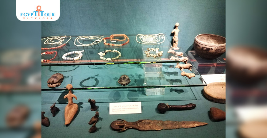 The The Nubia Museum, in Aswan, as a matter of fact, is deemed to be one of the most important Egyptian museums. Nubia Museum in Aswan, Egypt, houses an extensive collection of prehistoric artifacts, which shed light on the history and culture of Nubia before the advent of writing. Among the most prominent examples of the prehistoric era in the The Nubia Museum, in Aswan, as a matter of fact, is deemed to be one of the most important Egyptian museums. Nubia Museum are limestone statues found in Neolithic tombs in Nubia, depicting people and animals. Stone tools: These tools were found in archaeological sites from the Paleolithic period in Nubia, and were used for hunting, farming, and gathering food. Ceramic vessels These vessels were found in Neolithic archaeological sites in Nubia, and were used to store food and drink. These models help shed light on the lives of Nubians in the prehistoric era. It reveals their culture, customs and traditions, and also provides information about their social and economic development.