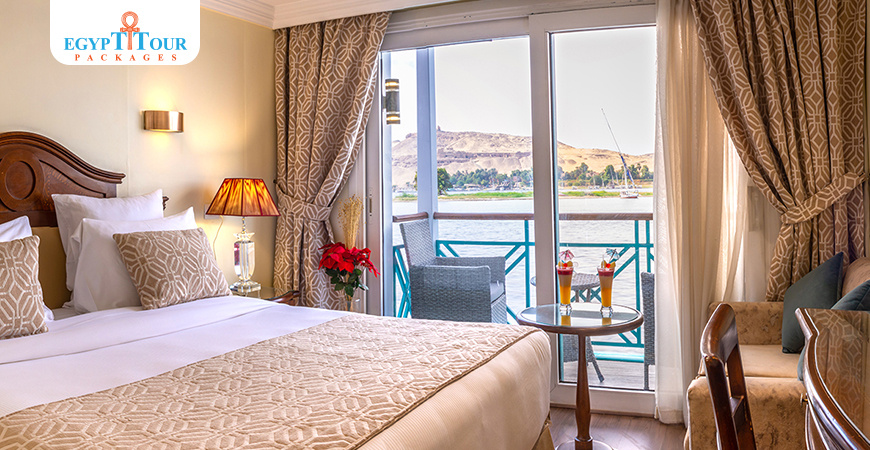 Sonesta Moon Goddess is a 5-star luxury cruise on the Nile that provides exceptional comfort. It features beautifully designed rooms and common areas, along with spacious cabins that have private balconies. This allows you to enjoy the stunning views of the Nile while on board the Sonesta Moon Goddess Nile Cruise. BOOK NOW ONLINE.
