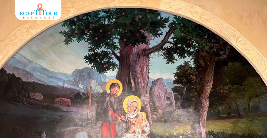 One of the church's most notable ancient artifacts is Michel Julian's gift to Egypt. It consists of 6 unique paintings known as Fresca paintings, depicting the Holy Family's journey from Bethlehem to Upper Egypt during the time of the massacre. These paintings were created by a renowned French artist in Lyon, France, and Father Michel Julian brought them to Egypt. He placed the sole copy of these paintings on the church wall.