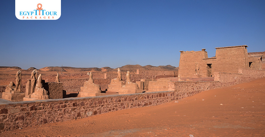 temple of Wadi Es-Sebua is located 50km south of Aswan Dam. This temple was built by Ramesses II and was dedicated to the god Amun and Ra-Horakhty.