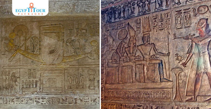 Wadi es-sebua Temple contains many wonderful inscriptions and decorations such as, A relief depicting Ramesses II making an offering to the gods