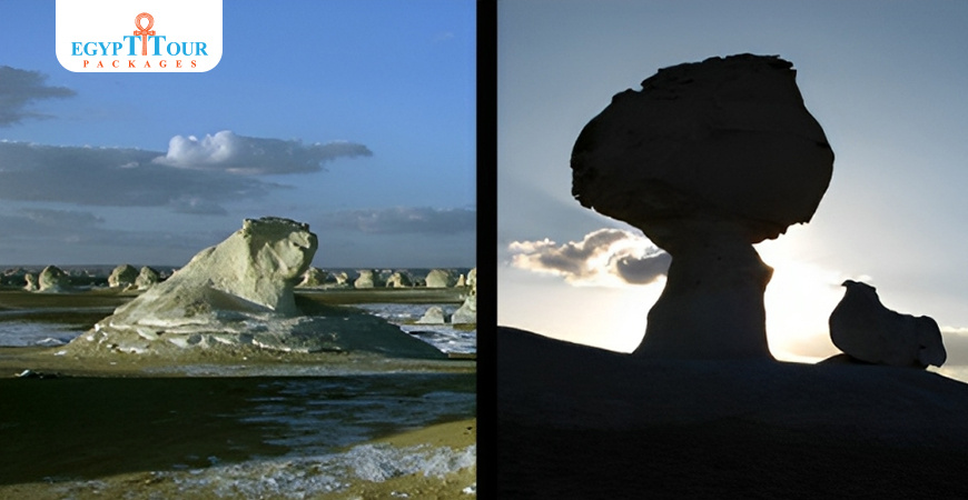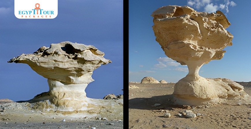 3.Discover Mushroom Rock This unique rock formation resembling a giant mushroom is a popular attraction in the White Desert. Erosion and sandstorms have shaped this striking calcium rock formation.