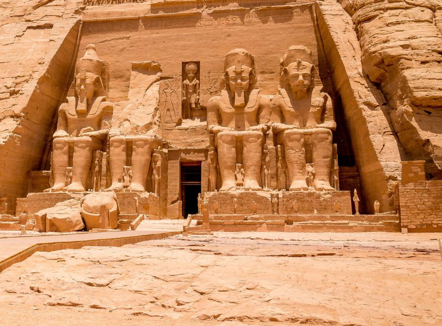 The two temples of Ramses the second and the Queen Nefertari were carved out of the Mountain on the west bank of the Nile between 1274 and 1244 B.c, The Great Temple was dedicated to Ramses the second, Ra-Harakhty, Amun Ra, and Ptah, with 4 Colossal statues, The second temple was dedicated to The Queen Nefertari and Goddess Hathor, the two temples were dismantled stone by stone and rebuilt on higher ground, The preservation of the two temples of Abu Simbel must Rank as the greatest Achievement of the Unesco.