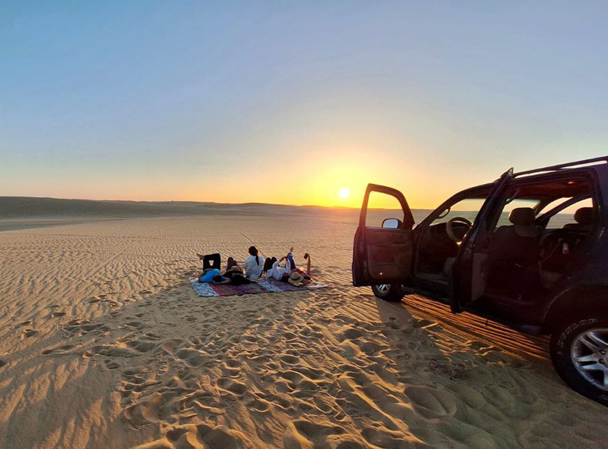 Visit Bir Waheed's hot and cold springs Later, we enjoy a traditional Bedouin tea at sunset Overnight in a desert camp and BBQ dinner. Wahid-Siwa beer. If, on the other hand, you need to sleep in a camp in the desert or a hotel in Siwa , breakfast .lunch and dinner are included