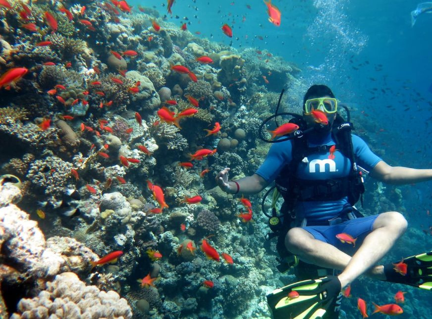 The sea around Hurghada is a popular beach destination in Egypt, located along the Red Sea coast. It is well-known for its scuba diving opportunities. Hurghada offers some of the best coral reef dive spots in the world, allowing seeing many colourful fish species, including the Red Sea Clownfish, Emperor Angelfish, Picasso Trigger Fish and Moray Eels.