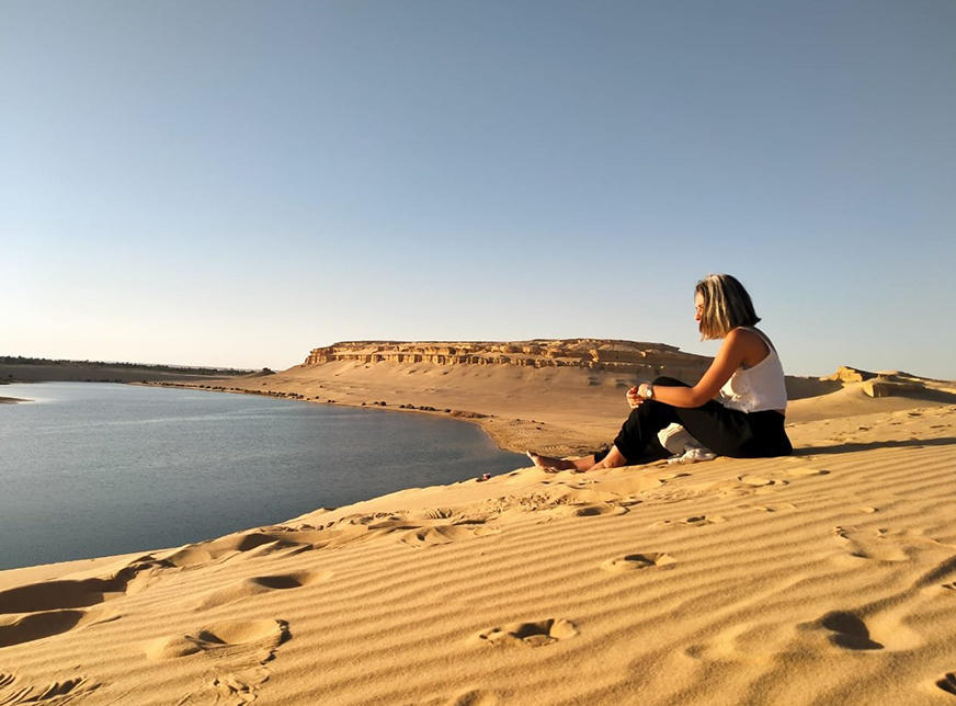 One of the most beautiful lakes in Egypt, overlooking sand dunes, is the Magic Lake. Around the lake gives you the chance to witness one of the most eye-catching sunsets you will ever see.