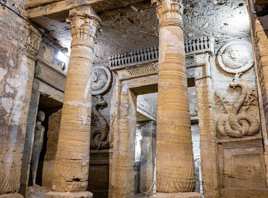 Archaeologists believe that the Catacomb of Kom el Shoqafa was started in the 2nd century A.D. and was used to intern the dead for the next 200 years.This was a period in the history of the city of Alexandria, Egypt's second-largest city, has many reasons to be famous. Alexandria when there was a great mixture of different cultures. Of course, there was the ancient history of the great Egyptian kingdoms which went back thousands of years