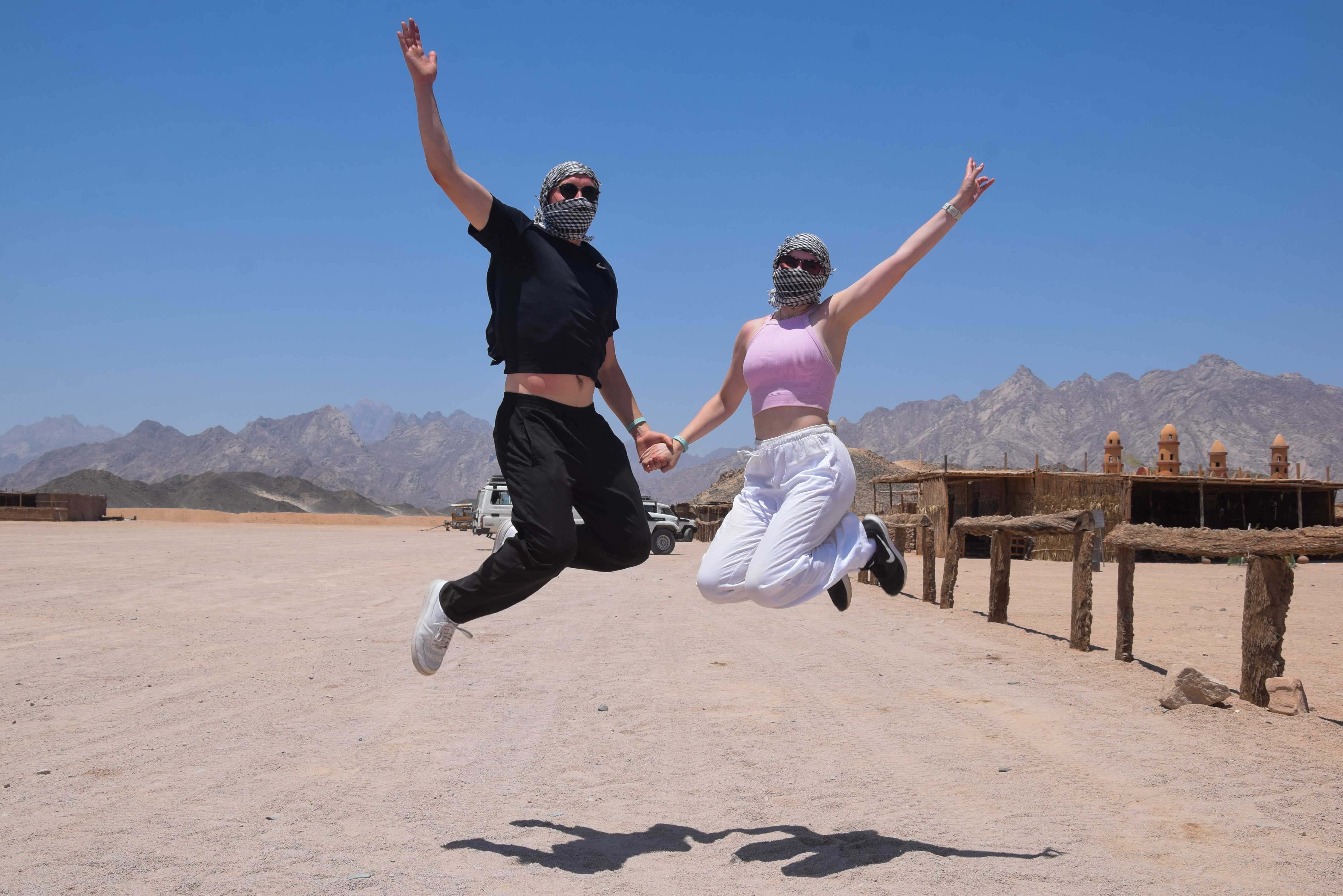 Next, hop on a rugged quad bike and enjoy an exciting 30-minute ride through the stunning desert landscape, guided by an experienced instructor. After the ride, continue your adventure with a Jeep off-road drive that takes you deeper into the desert toward a traditional Bedouin village.