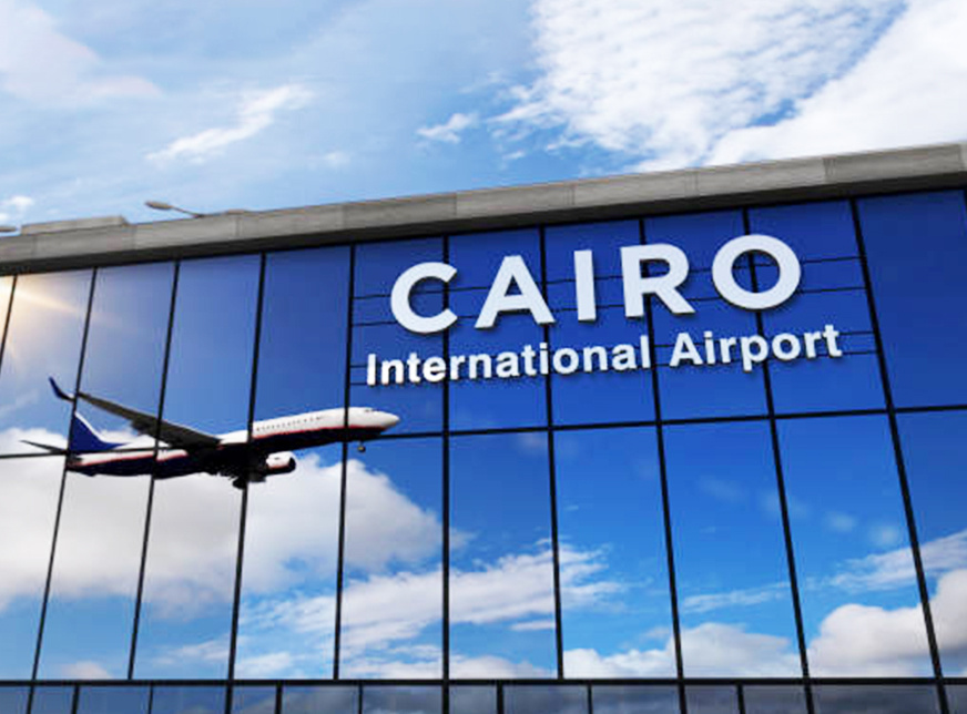 Transfer zum Flughafen, Flug nach Kairo – Übernachtung in Kairo