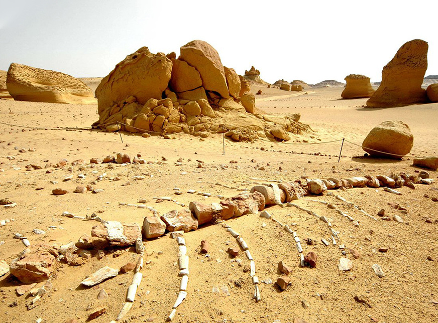 Wadi Al Hitan ist ein Naturschutzgebiet und wurde 2005 von der UNESCO zum Weltkulturerbe erklärt. Es ist auch für die Fossilienfunde im Zeuglodon-Tal bekannt, die 1936 entdeckt wurden. Das Wadi liegt 35 km westlich des Wadi El-Ryan, tief in der westlichen Wüste. Es ist ein Fossiliengebiet, das als Freilichtmuseum gilt und 45 Millionen Jahre alt ist. Hier findet man versteinerte Skelette von Urwalen, Haifischzähne, Muscheln und Mangrovenwurzeln, die in weichem Gestein erhalten geblieben sind. Überall stößt man auf versteinerte Muscheln und Korallen. Besuchen Sie das Fossilien- und Klimawandelmuseum.