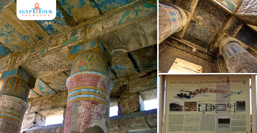 -Il Tempio dell'Aakh Meno: fu costruito dal re Thutmose III nel 25° anno del suo regno in occasione della celebrazione del Giorno del Santissimo. Il tempio comprende una corte di maestri, il Santo dei Santi, magazzini e una stanza decorata con scene di piante, animali e uccelli che Thutmose III portò con sé nella sua campagna dall'Asia. Ha quattro colonne e si trova accanto al Santo dei Santi ed è chiamato il Giardino delle piante. Contiene una targa contenente un elenco dei nomi dei re che erano interessati a Karnak, ora conservato nel Museo del Louvre.