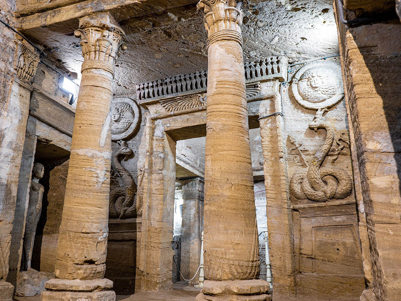 Begin uw dagtour in Alexandrië met een bezoek aan de Catacomben Kom el Shoqafa