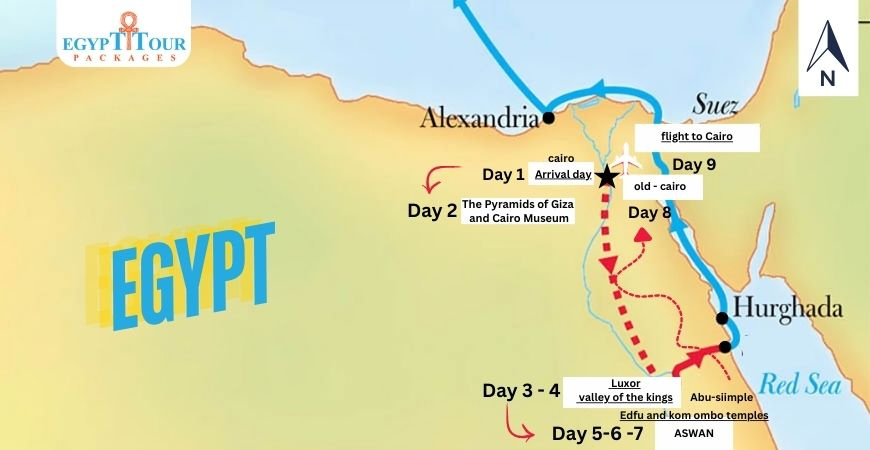 Hulp nodig bij het plannen van een 9-daagse reis naar Egypte? Laat ons u helpen bij het organiseren van uw reisroute voor een onvergetelijke ervaring in Egypte