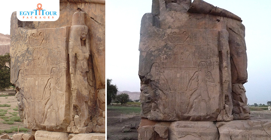 Wprowadzenie historii dwóch posągów do świata legend przyczyniło się do rozpowszechnienia nazwy Memnon po nich, chociaż historycznie sięgają króla Amenhotepa III, którego imię zaginęło poza kręgiem uczonych i badaczy, a wszyscy zaczęli nazywać je (Memnon), nawet rdzenni mieszkańcy regionu. Legenda ta przyciągnęła w starożytności wizyty Greków i Rzymian, aby posłuchać dźwięku zawodzenia Memnona, zgodnie z powszechną interpretacją w tamtym czasie, która jest zasadniczo dźwiękiem powietrza przechodzącego przez popękane części, co czyni ją jedną z najsłynniejszych starożytnych i współczesnych świątyń. Według wielu historyków „dźwięk ustał w roku 200 n.e. Po przeprowadzeniu szeregu prostych renowacji, które usunęły rozległe pęknięcia i szczeliny. „Dziś, podczas wizyty na zachodnim lądzie Luksoru, grupy turystyczne zaczynają oglądać posągi Memnona, ze względu na ich słynne powiązanie z legendą wojny trojańskiej, pomimo ich ogromnych rozmiarów, które kuszą wielu, aby zrobić sobie między nimi zdjęcia. Niektóre grupy turystyczne chcą zobaczyć je podczas lotów balonem, a następnie odwiedzić je na ziemi, aby zrobić im zdjęcia, ze względu na ich sławę wśród turystów wszystkich narodowości odwiedzających miasto Luksor.