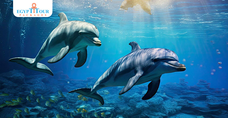 Dolphin House, also known as Sha'ab Samadai in El Quseir, is a great spot for snorkelers to see dolphins near the reefs. You can snorkel with dolphins in the stunning Red Sea and even swim with them.(The Egypt tour packages representative will meet you at your hotel in El Quseir and take you to the marina. From there, you will board a boat to head to the Dolphin House, also known as ‘’Sha’ab Samadai’’. This is a great spot for snorkeling enthusiasts to see dolphins near the reefs. Before you start snorkeling, the guide will give you a brief about the site. You will have two stops for snorkeling near the reefs where dolphins live, each lasting about 45 minutes with breaks in between for drinks and snacks on the boat. If you've always wanted to swim with dolphins in their natural habitat, this trip to the Dolphin House “Samadai Reef” is your chance. The reef is shaped like a horseshoe, providing protection from the wind and sea, making it a perfect spot for spinner dolphins to relax and play. It's a unique opportunity to interact with these beautiful marine mammals as they swim and play with snorkelers and divers. If you're lucky, you might even come face to face with the dolphins. After snorkeling, you can explore Shaab El Quseir before heading back to the port for your transfer to the hotel. Lunch and drinks will be provided on board, making it a memorable day at the Dolphin House.) Book your trip now.