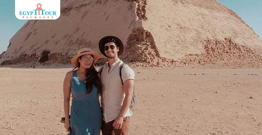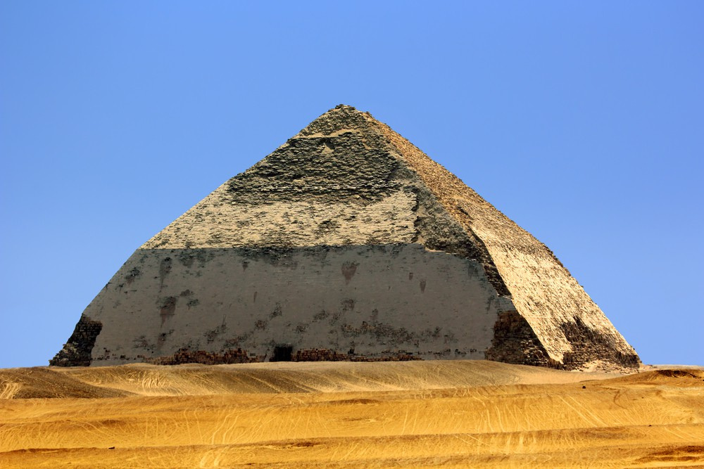 The The Bent Pyramid, constructed by Pharaoh Sneferu during the Old Kingdom, is an ancient Egyptian pyramid situated in the royal necropolis of Dahshur. Bent Pyramid is just a short distance away. It stands out because of its various angles and the fact that its limestone covering is mostly preserved. Tourists can now visit the The Bent Pyramid, constructed by Pharaoh Sneferu during the Old Kingdom, is an ancient Egyptian pyramid situated in the royal necropolis of Dahshur. Bent Pyramid since it reopened in 2019 after being closed for 65 years for restoration work.