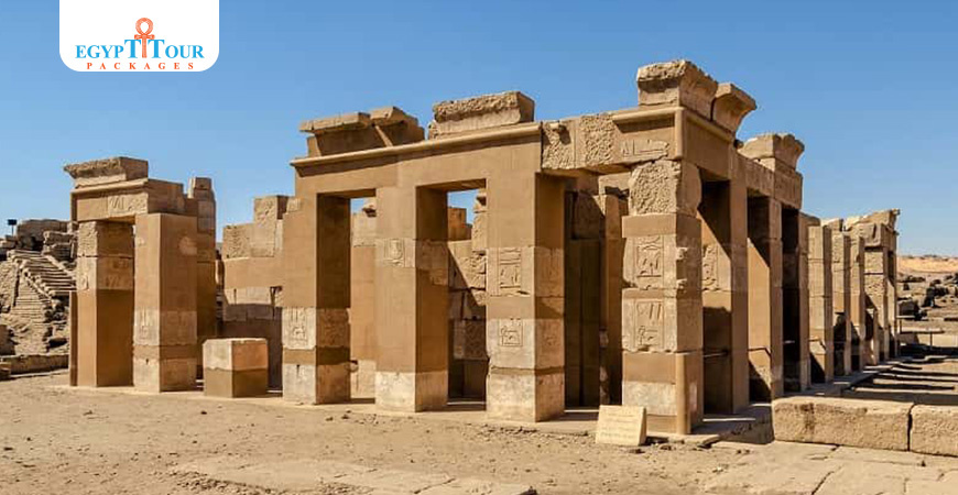 There is also the temple of the god “Khnum”, the stones of which were looted earlier and only the two pillars of the main entrance remain.