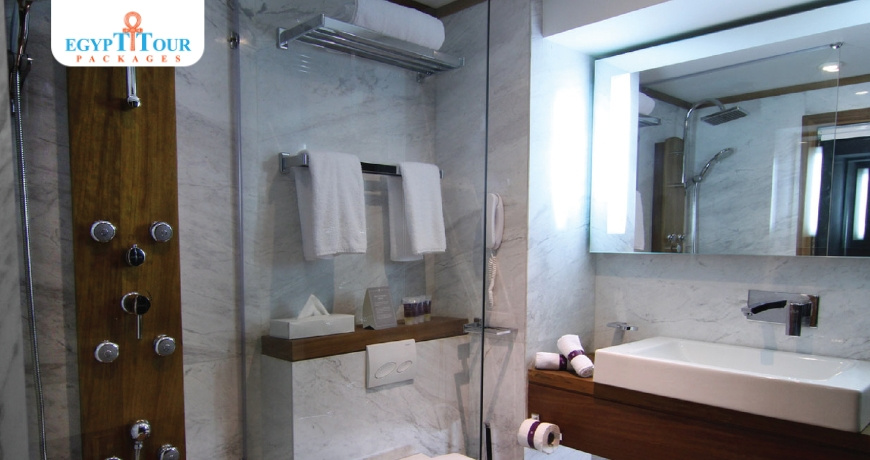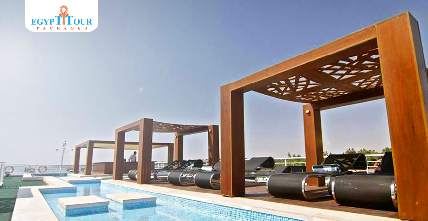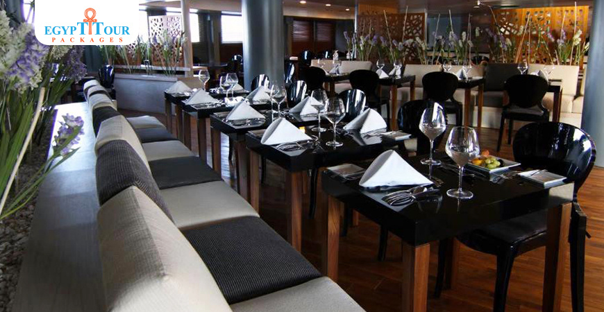 The contemporary Nile cruise ship Le Fayan was built in 2010 and is operated by the Etapes Nouvelles hospitality group. They worked together to create a relaxing and thoughtful experience for guests. Onboard, you can enjoy a modern sun deck, a pool, spacious lounges, a bar, a gym, a spa, outdoor dining, and a fine dining restaurant. The ship features 57 roomy accommodations with floor-to-ceiling windows that overlook the Nile Valley. Rooms can be set up as single or double, each equipped with two lounge chairs and a coffee table. Amenities include a dresser, a small desk, a large flat-screen TV with cable, WiFi, a fully stocked mini-bar, an electronic safe, closets, drawers, and room service. Each room also has a stylish bathroom with a multi-head shower made of white marble and wood. There are three unique suites that offer the ultimate relaxation. These suites feature large windows with Nile views, a living area with lounge seating, and a dining area. They come with a dresser, desk, wide flat-screen TV, WiFi, a fully stocked mini-bar, an electronic safe, closets, drawers, and room service. The suites also have modern bathrooms with multi-head showers. The largest suite, measuring 555 square feet, includes a large dining table, a mosaic shower, and a jacuzzi. The fine-dining restaurant provides an elegant dining experience with set menus, a breakfast buffet, and a wide selection of drinks and wines. The diverse menu features unique Egyptian dishes that will appeal to everyone. For special occasions, the chef can arrange a stunning sunrise breakfast or a romantic dinner under the stars on the top deck. The modern lounge and bar are open 24/7, making it a perfect spot for pre-dinner drinks or a sunset cocktail. On certain nights, the lounge features an Egyptian belly dancer and local Tanura dance performances. Guests can also find various entertainment options.BOOK NOW ONLINE.