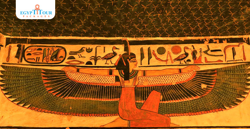 In the eastern part of Kom Rabia, there is a tiny Temple of Hathor. It was constructed by Rameses II, but unfortunately, only the upper parts of the columns with Hathor's head and a few blocks with reliefs are visible now. The site has been buried again after the excavation. Towards the southwest, you can also catch a glimpse of a small temple built by Seti I. Additionally, there are indications that a humble Aten Temple existed at Kom el-Qala during the reign of Akhenaten.