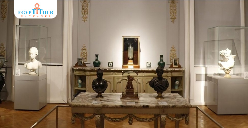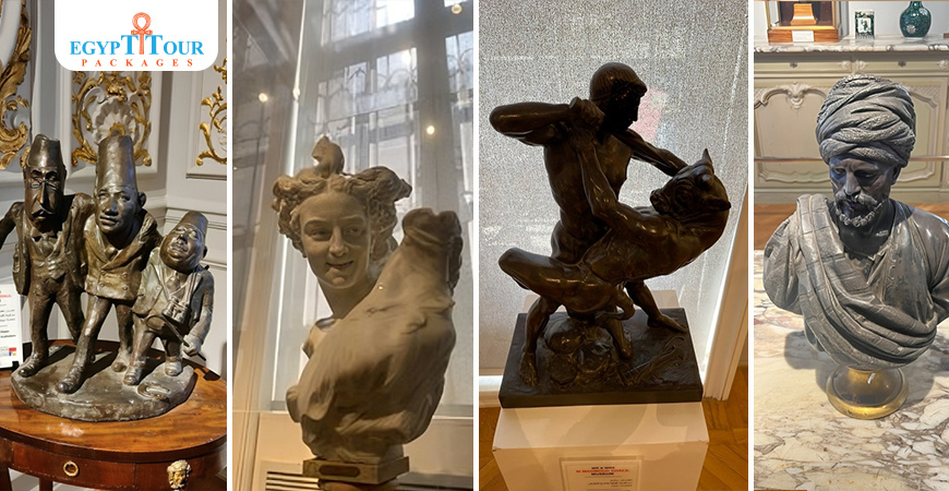 The museum owned by Mahmoud Khalil and his wife is filled with rare paintings and artwork, making it a valuable treasure trove of Egyptian art. Mahmoud Khalil's personal collection is considered one of the largest art collections in Egypt and the Middle East, showcasing important modern art. The museum has artworks displayed on the ground floor and second floor, while the underground floor is used for administrative purposes and houses a library, information center, and discussion hall. In addition to paintings, the museum also houses collections of vases, gems such as emeralds, crystal works, and carmen works created by Chinese artists. There is also a stunning collection of bronze, marble, and plaster statues, including modern Egyptian artists' Pharaonic sculptures. The museum is home to artwork from leaders of the impressionist school of art, such as Dega's painting "Toulouse-Lautrec," as well as works by the French Romantic artist Ferdinand Victor Eugène Delacroix. It also features numerous artworks from the Orient, including Frumentan, Preshide, and Gabriel Piesy.