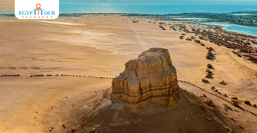 Al-Mudawara mountain is a high plateau in the shape of a circle,at the bottom of which is a clean, pollution-free natural lake.The reason for Mount Al-Mudawara’s fame is that it is located in a unique natural reserve, namely the Wadi al-Rayyan Reserve, which is 150 kilometers away from the Egyptian capital Cairo.The Mount Al-Mudawara area is an enchanting destination in the desert of Fayoum Governorate in the Wadi Al-Rayyan Reserve where safaris mountain climbing, and sand skiing can be undertaken.Wadi Al-Rayyan Reserve is distinguished by its integrated desert environment, including sand dunes, natural springs, wide bodies of water, various plant life and diverse wild animals, in addition to important and diverse marine fossils.