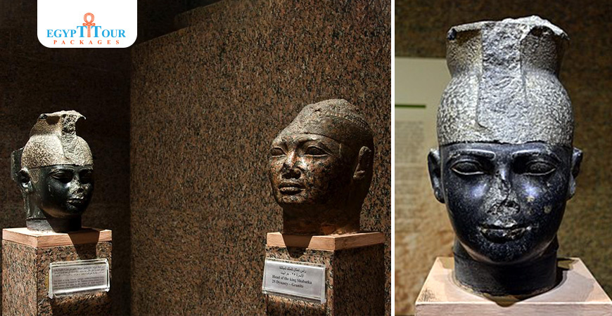The Portrait of Nubian King Taharqa is a monumental head sculpture of the Kushite king Taharqa, who ruled from 690 to 664 BC. It is made of black basalt and is one of the most iconic artifacts in the The Nubia Museum, in Aswan, as a matter of fact, is deemed to be one of the most important Egyptian museums. Nubia Museum in Aswan, Egypt. portrait is a life-size head sculpture of the Kushite King Shebaka, who ruled from 716 to 702 BC. It is made of black granite and is another iconic artifact in the The Nubia Museum, in Aswan, as a matter of fact, is deemed to be one of the most important Egyptian museums. Nubia Museum .