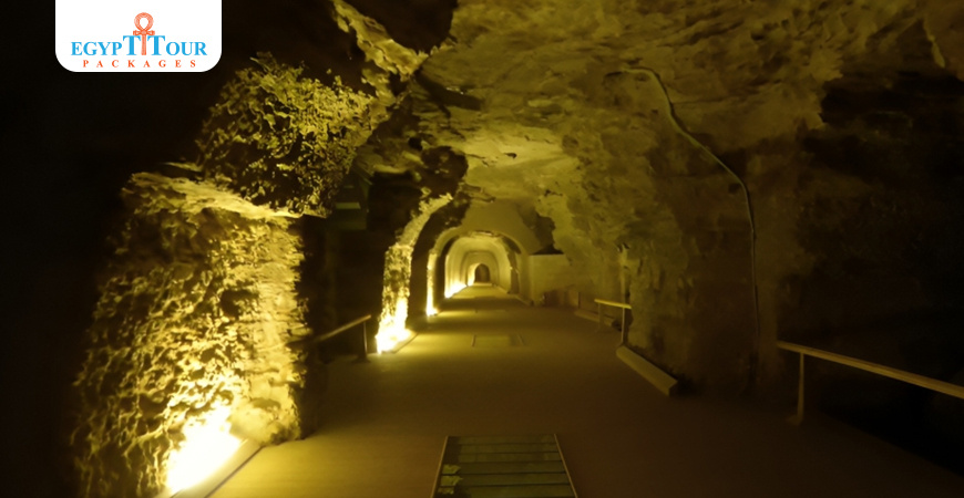 The Serapeum is the name given to every temple or religious structure dedicated to the worship of the monotheistic god Serapis, which is a sacred cult in Egypt in the Hellenistic “Greek” era. It combines two of the gods of ancient Egypt, Osiris and Apis, and its goal is to make citizens of Greek origins and others of Egyptians origins share the worship of the protector god who combines the attributes of the Greek gods “Zeus and Hades” with the attributes of the Egyptian gods “Osiris and Apis.” The museum is located on the ground, and includes a group of tunnels, basements, and caves dug deep under the rocks of the Saqqara Plateau, with a length of 400 meters, where the ancient Egyptian, without using technology and machines, dug. The Serapeum Temple is distinguished by the fact that it contains 26 huge, carefully crafted granite sargphago. The coffin lid weighs 30 tons, and the body of the sargphago itself weighs 70 tons. This means that it requires approximately 500 men to move each box. The museum includes a group of sargphago made of hard rocks (red granite - black granite - basalt - schist - quartz), which are hard rocks. The ancient Egyptian was able to carve them with primitive tools that were used in the Dynastic Era, respectively (stones - copper - bronze). - Then iron in later times).