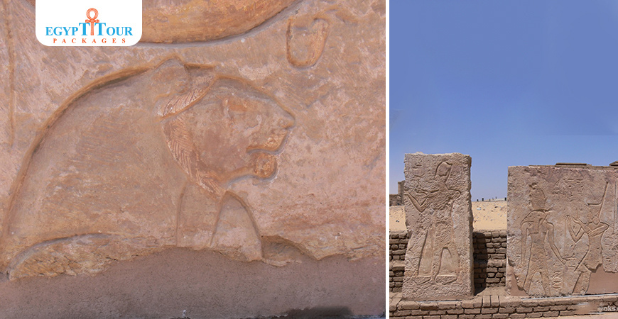 There are many engraved paintings in the temple including the Stele of Ramses making an offering to a deity, Stele of Ramses (right) making a conical shaped offering to the god, Horus.